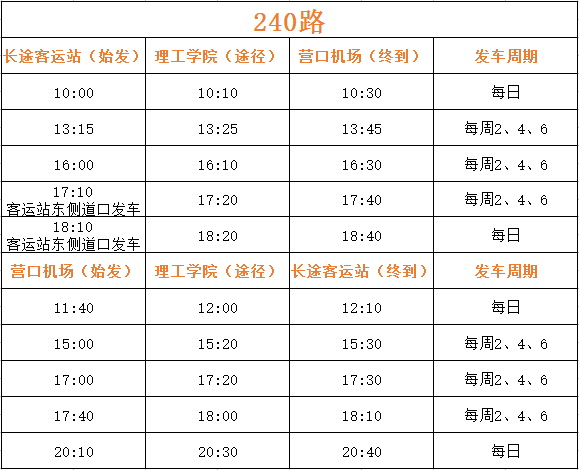 公汽公司從機(jī)場辦公室獲悉:從2017年8月1日起,營口藍(lán)旗機(jī)場開辟“營口—濰坊—西安”新航線。針對(duì)上述情況,為方便市民出行,經(jīng)公司研究現(xiàn)提出調(diào)整機(jī)場240路運(yùn)營班次。具體內(nèi)容如下: